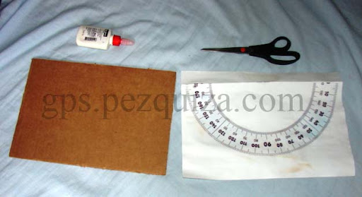 Veja abaixo o exemplo do transferidor colado no papelão para dar mais firmeza